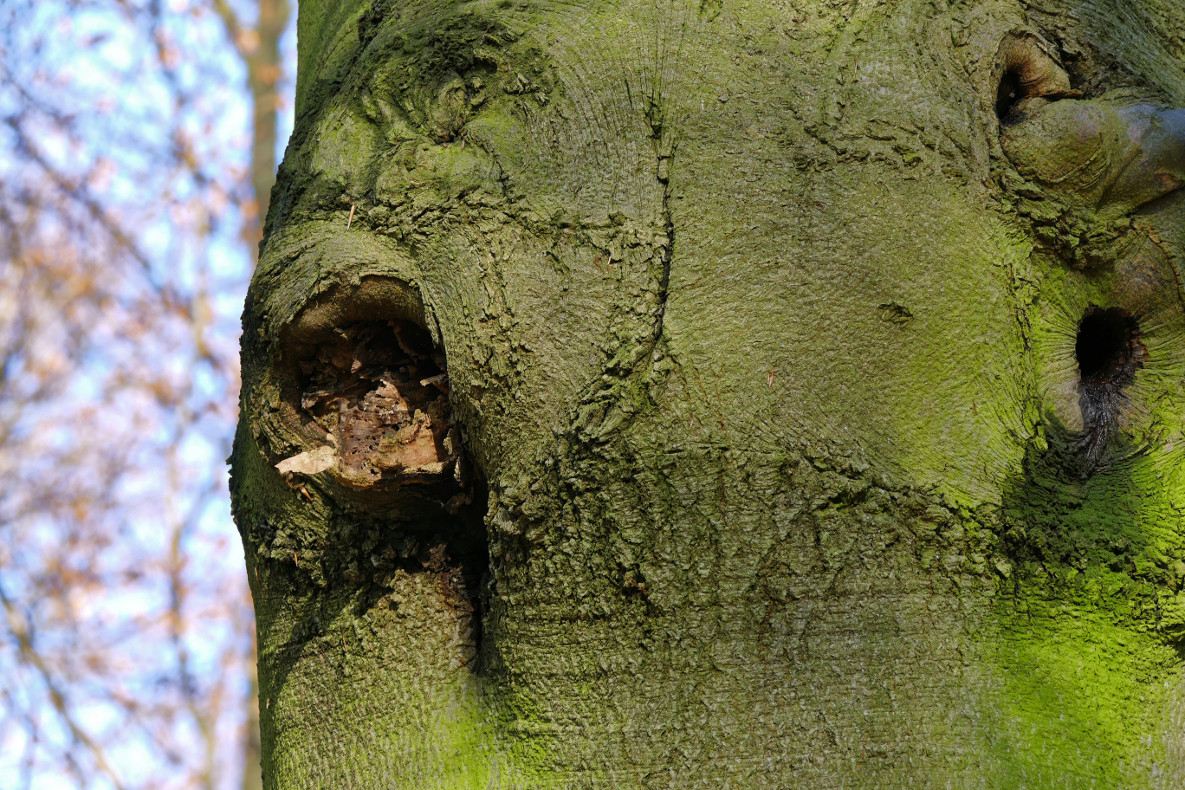 einem Baumstamm Gesichter erscheinen. Und plötzlich sieht man neben